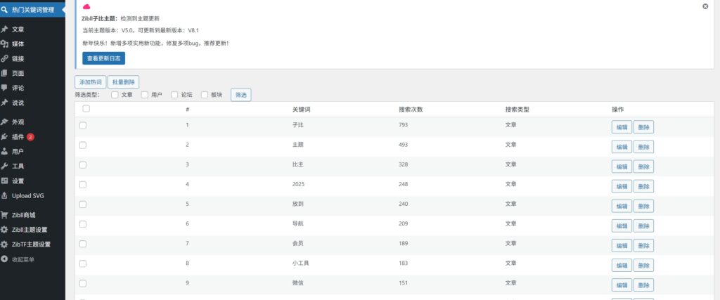 这是一款子比主题后台关键词搜索管理的代码,这个代码可以准确清楚的看到用户搜索的关键词,并且管理员可以修改搜索多少次和删掉搜索词,非常实用的一款搜索管理,喜欢的自行部署!